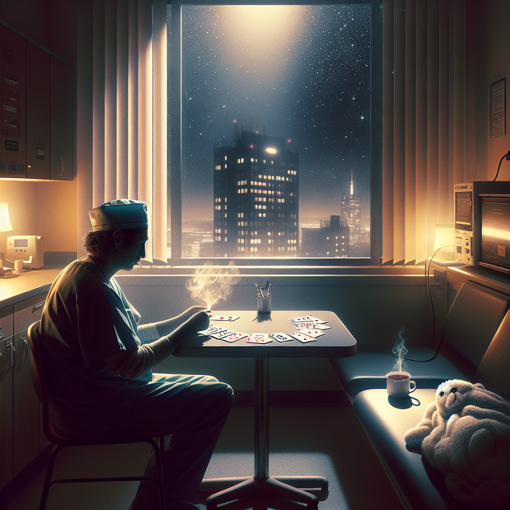 Back in the break room, I sipped my tea, savoring its warmth. There's a simplicity in these solitary rituals that I find soothing. The hospital can be an intense, unpredictable place, but here, in this moment, I hold control. The cards, the tea, the quiet — they anchor me.